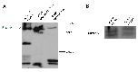 (A) Much larger portion of the western blotting with polyclonal antibody raised against the human prune protein (A59) shown in Figure 4A. (B) Western blot with polyclonal antibody raised against the NM23 protein (K73) in extracts from murine cell line (4T1 mouse breast cancer cell line), and in extracts from X.laevis embryos (16 hpf). |