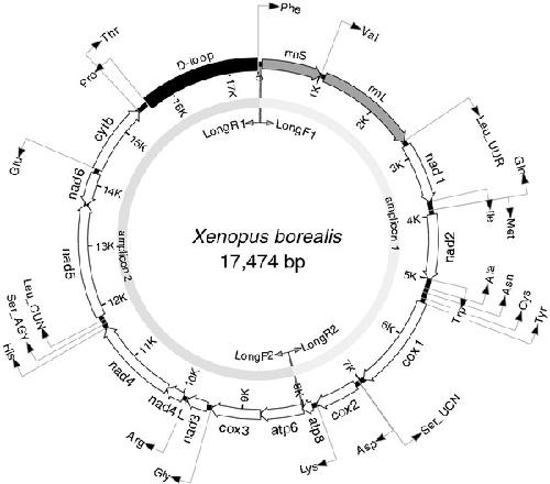 CONCLUSIONS: Next generation sequencing of long-PCR amplicons using single taxon or multi-taxon approaches enabled two new species of Xenopus mtDNA to be fully characterized. We anticipate our complete mitochondrial genome amplification methods to be applicable to other amphibians, helpful for identifying the most appropriate markers for differentiating species, populations and resolving phylogenies, a pressing need since amphibians are undergoing drastic global decline. Our mtDNAs also provide templates for conserved primer design and the assembly of RNA and DNA reads following high throughput "omic" techniques such as RNA- and ChIP-seq. These could help us better understand how processes such mitochondrial replication and gene expression influence xenopus growth and development, as well as how they evolved and are regulated.