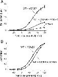 I–V relationships of IKs tail currents. (A) Mean current amplitudes. (B) Current amplitudes normalized to maximum current values obtained after data fitting to the Boltzmann function. Mean values ± SEM are shown (n = 9).
