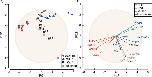 Figure 6. TRAP provides cell-type enrichment for genes of different absolute expression levels and reproducibility across different transgenic lines in the X. laevis retina. A: PCA of individual samples showing qPCR-based expression levels from TRAPed replicates from the same GFP-rpl10a frog lines as well as from different lines. B: PCA of the contribution of each of the 16 analyzed genes on the overall variance. The placement and length of the vectors show the contribution to the variance for each gene. The gene expression data have been standardized to a value of 1, demarked by the tan circle (see Experimental Procedures section).Download figure to PowerPoint