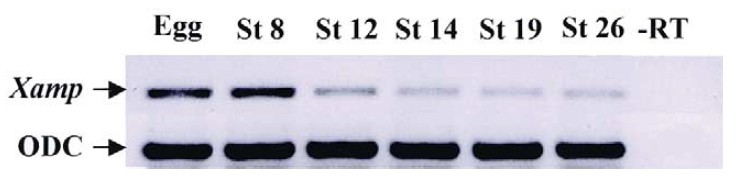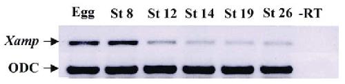 RT-PCR analysis shows that Xamp transcript is expressed maternally.