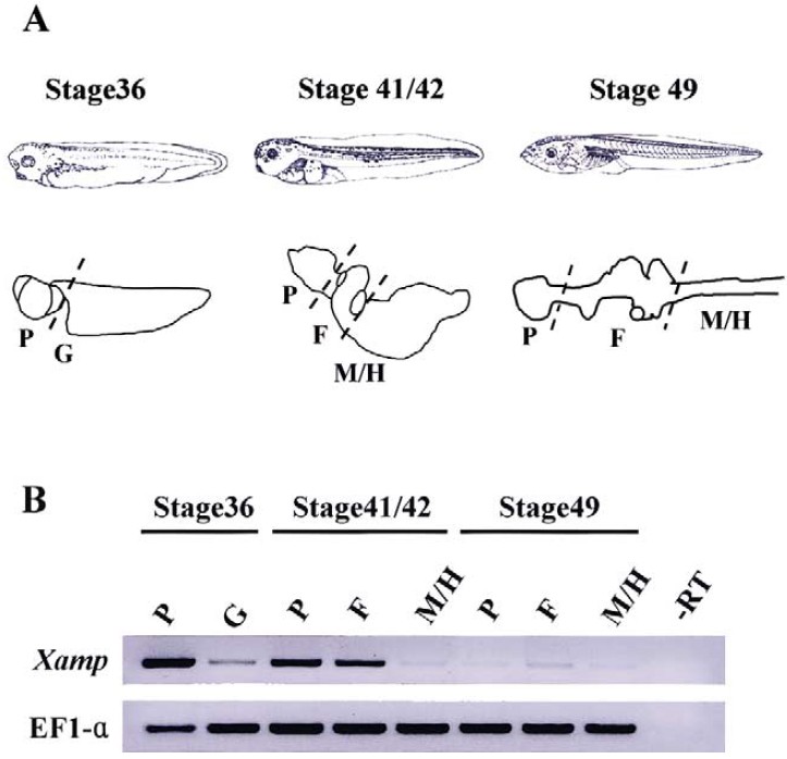 Fig. 4. Spatiotemporal regulation of Xamp expression in developing gut