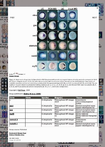 Figure 2. Manual annotation data are displayed along with literature figures and legends. For each image curated from the literature the legend along wit Xenbase annotations are displayed. Often these are quite different due to the use of legacy gene names in the literature or non-standard anatomical terminology. In this example the ‘t' gene is called ‘xbra' in the legend. No detailed anatomical data are present in the figure legend, but have been added by curators and can now be found using the various query systems in the Gene Expression Search toolset.