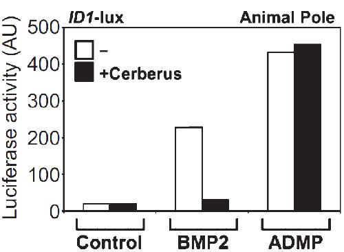 Cerberus does not affect ADMP activity, whereas it inhibits BMP responsiveness