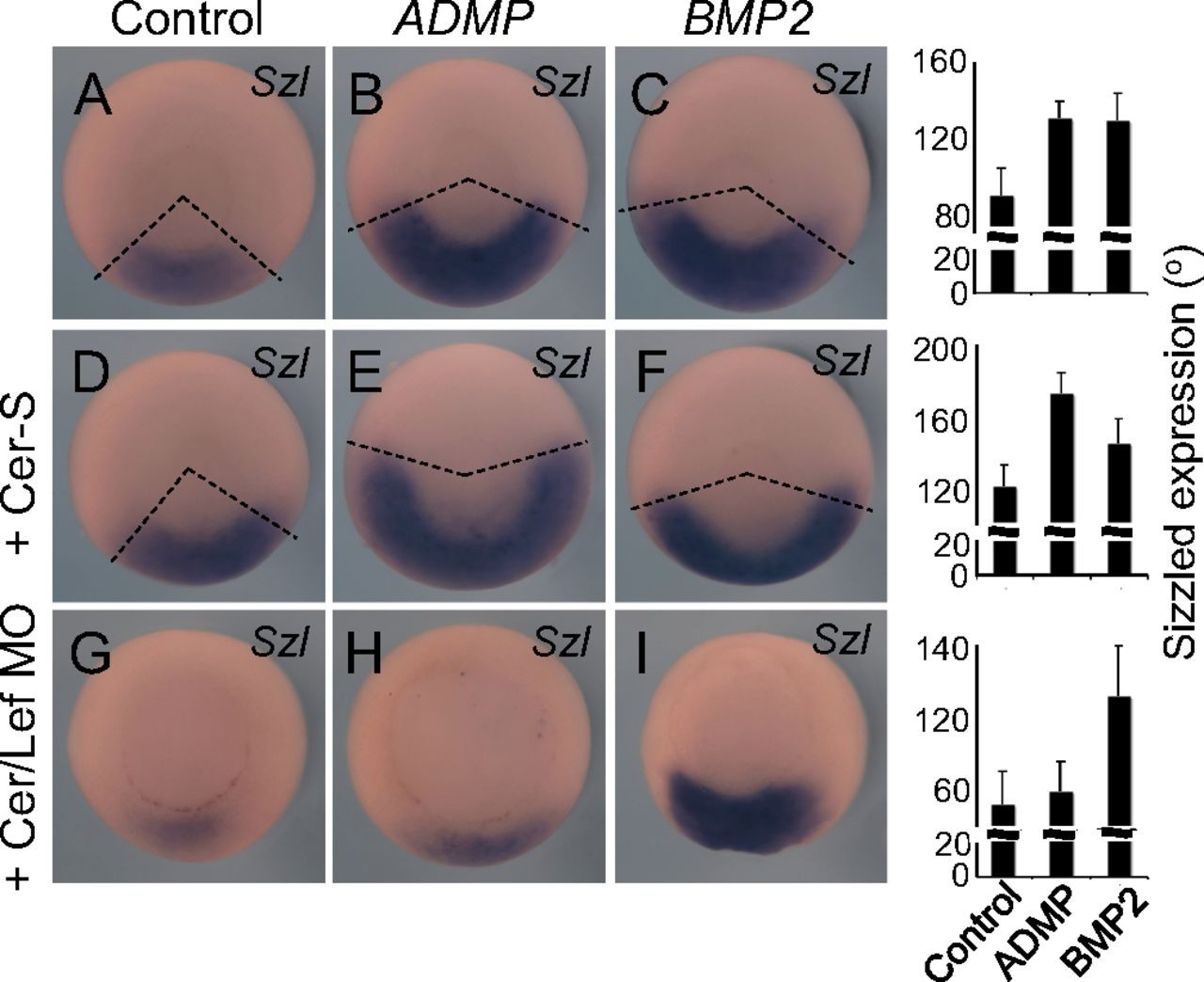 dorsal side up and Sizzled expression domains are highlighted with dotted