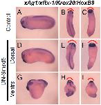 HoxB9) at late neurula stage (A), for xRx-1 at early