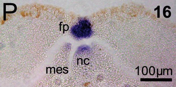 tgfbi ( transforming growth factor, beta-induced, 68kDa ) gene expression in Xenopus laevis embryos, NF stage 16, as assayed by in situ hybridization. Coronal Sections: dorsal up. |