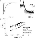 Figure 4. Effect of N-terminal truncation on kinetics of hERG deactivation. (A) Typical examples of ionic current (i) and fluorescence (ii) recorded after repolarization to −120 mV from a depolarized holding potential for E518C and Δ2–25 hERG. The fast time constant (τfast) for deactivation of ionic current was derived from a fit of a double exponential function to the decaying phase of the current after repolarization. Time constants for VSD return were derived from fits of a single exponential to the decaying phase of the fluorescence record. (B) Summary of the voltage dependence of rates of deactivation and VSD return for E518C and Δ2–25 hERG channels. Error bars are SEM; n ≥ 7.