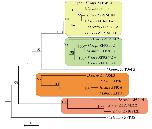 Bayesian posterior probabilities. The scale bar shows the number of substitutions per site.