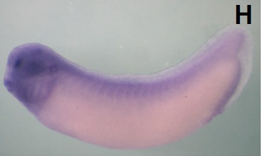 wdr5 (WD repeat domain 5) gene expression in Xenopus laevis embryo, assayed via in situ hybridization, NF stage 24, lateral view, anterior left, dorsal up. |