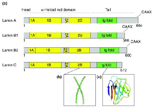 Kapinos, Characterization of the head-to-tail overlap complexes formed by human lamin A, B1 and B2 "half-minilamin" dimers. 2010, Pubmed