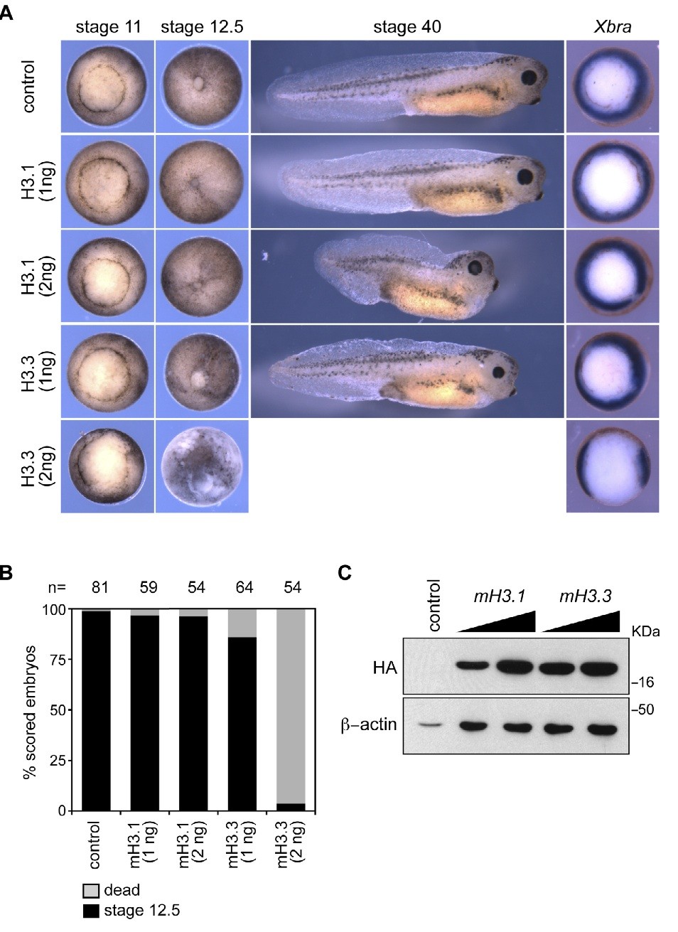 Fig. 1. Loss of H3.3/H3 leads to gastrulation arrest in Xenopus