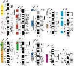 Figure 4. Comparative cytogenetic map of Xenopus (Silurana) tropicalis.Homologous chicken and human chromosomes are shown to the left of each X. tropicalis chromosome (see Table S3). Genetic linkages of chicken macrochromosomal arms and/or macrochromosomes are represented by the same colored bars as those in Figure 2. The G-banded ideograms of X. tropicalis chromosomes were taken from our previous report [40]. Chromosomes are ordered in accordance with Hellsten et al. [20]. Numbers in parentheses indicate chromosome numbers from our previous report [40]. Solid bars to the right of the X. tropicalis chromosomes indicate the chromosomal segments in which intrachromosomal rearrangements occurred between X. tropicalis and chicken. Gene symbols and chicken chromosome numbers enclosed in boxes indicate the chromosomal segments that corresponded to chicken microchromosomes in which intrachromosomal rearrangements had occurred. un, chromosomal location is unknown. |