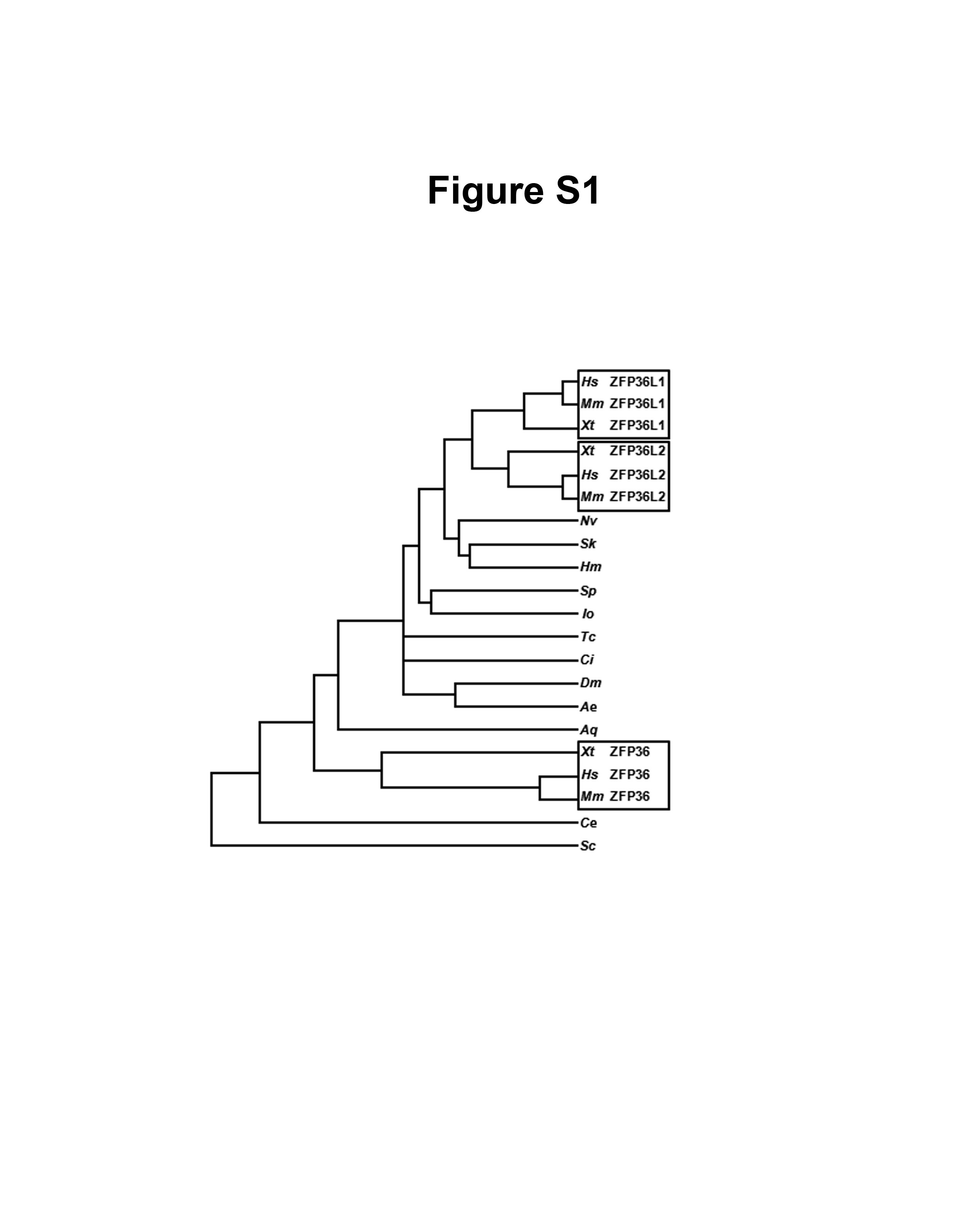 Lai, Interactions of CCCH zinc finger proteins with mRNA. Binding of tristetraprolin-related zinc finger proteins to Au-rich elements and destabilization of mRNA. 2000, Pubmed , Xenbase