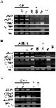 Figure 4. The different zfp36 genes respond differently to growth factors treatment in animal cap explants. (A) RT-PCR analysis of zfp36 gene expression in animal cap explants treated with 12.5 or 50 ng/ml of FGF2 or with the FGF inhibitor in the absence (SU) or in the presence of 50 ng/ml FGF2 (SU+F). (B) RT-PCR analysis of zfp36 gene expression in animal cap explants treated with 1, 5 or 25 ng/ml of activin or with the activin inhibitor in the absence (SB) or presence of 25 ng/ml activin (SB+A). (C) RT-PCR analysis of zfp36 genes in on animal cap explants from embryos injected with 0.5 ng or 1 ng of BMP2 mRNA. Stage 20 embryo (Emb) or uninjected embryo or untreated animal caps (-) were assayed by RT-PCR for the expression of control genes msr, myl1 and globin. Odc was used as control of loading and a reaction was performed in the absence of reverse transcriptase to check for genomic DNA contamination (-RT). |