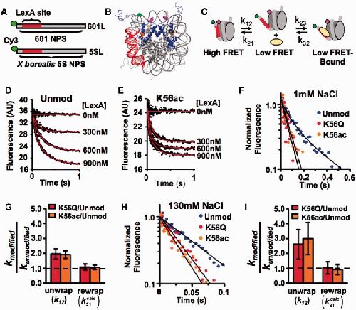 Koopmans, spFRET using alternating excitation and FCS reveals progressive DNA unwrapping in nucleosomes. 2009, Pubmed