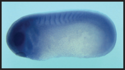 kmt5c (lysine (K)-specific methyltransferase 5C) gene expression in Xenopus laevis embryo, assayed via in situ hybridization, NF stage 24-25, lateral view, anterior left, dorsal up. |