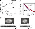 Figure 1—figure supplement 1. MT flux and severing are similar in embryo extracts.(A) Examples of MT length data used to calculate the dynamics of centrosome-nucleated MTs. One MT catastrophes during the time course and starts to shrink while a different MT is shrinking and undergoes rescue. (B) Examples of fluorescent speckle analysis of stage 3 and stage 8 spindles. Sparse labeling of MTs with rhodamine tubulin permitted tracking of individual speckles as they moved toward spindle poles. Kymograph analysis allowed quantification of flux rates within the spindles. Data are included in Table 1. (C) MT severing activity was measured and analyzed as in Loughlin et al. (2011) with no significant difference between stage 3 and stage 8. Data are representative of two extracts at each stage.DOI: http://dx.doi.org/10.7554/eLife.00290.004 |
