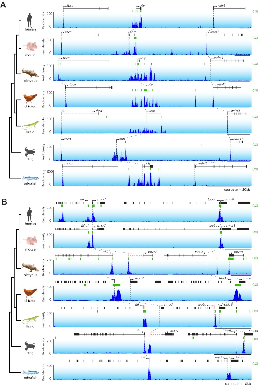 Epigenetic conservation at gene regulatory elements revealed by non-methylated DNA profiling in seven vertebrates.