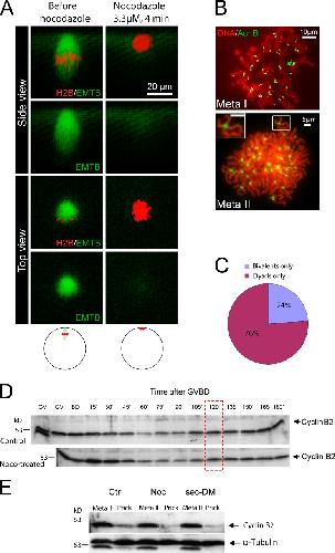 Taieb, Activation of the anaphase-promoting complex and degradation of cyclin B is not required for progression from Meiosis I to II in Xenopus oocytes. 2001, Pubmed , Xenbase