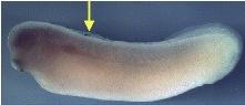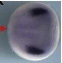 pfkfb4 ( 6-phosphofructo-2-kinase/fructose-2,6-biphosphatase 4 ) gene expression in Xenopus laevis embryos, NF stage 14, as assayed by in situ hybridization, dorsal view, anterior right. |