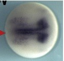 pfkfb1 ( 6-phosphofructo-2-kinase/fructose-2,6-biphosphatase 1 ) gene expression in Xenopus laevis embryos, NF stage 14, as assayed by in situ hybridization, dorsal view, anterior left. |