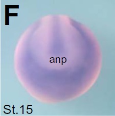 animal to the top. (F) Anterior view with dorsal to the top. (G and H) Lateral view with anterior to the left. Inset in (J) shows the dorsal view of head region. A dotted circle in