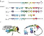 Fig. (2). Hox Spatial and Functional Collinearity. The four human and one Drosophila Hox complexes are homologues. The colour coding in Panels A and B shows the correspondence between the genomic order of Hox genes in the Hox complexes (A) and their spatial sequence of expression and action zones along the main body axis in Drosophila and human (B) [57]. |