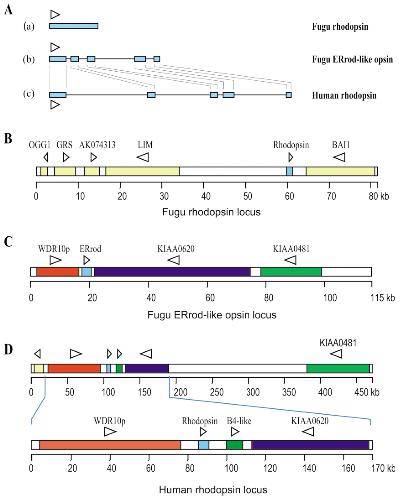 inhibitor-associated protein 1). (C) Four genes were found in Fugu ERrod-like opsin locus. These were the WDR10p, ERrod-like opsin, KIAA0620, and