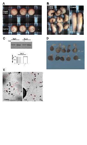 Suppl. Figure1. Inhibition of Calpain2 delays blastopore closure, blocks mesoderm convergent extension and modulates mesoderm migration, without affecting the canonical Wnt pathway. (A-B) Embryos were injected at 2 blastomeres at 2-cell stage with 1ng Capn2C105S. (A) Embryos injected with Capn2C105S show a marked delay in blastopore closure at stage 12 (top embryos) compared to controls (bottom embryos). (B) Tailbuds of embryos injected with Capn2C105S (left image) are shorter, dorsally-bent and lacking head structures. Some severe cases are spina bifida. Controls are shown to the right. (C) RT-PCR analysis shows that Xnr3 expression is not affected by CI3 treatment in stage 11 embryos. Xnr3 expression levels have been calculated using ImageJ and normalised against the loading control. (D) Injection of 70ng of Capn2 MO impairs the activin-induced elongation of animal caps explants. (E) Cell traces from Control and CI3-treated mesodermal cells derived from activin-treated dissociated caps and plated on fibronectin-coated coverslip. |