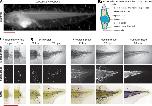 Figure 1. Tissue regrowth during Xenopus tadpoletailappendage regeneration. A: Xenopus laevis tadpole. Scale bar represents 500âµm. B: Schematic diagram of a transverse section of the tadpoletail. C: Transillumination and fluorescence images showing the recruitment of inflammatory cells to the amputation site by 3âhours post-amputation (hpa). Blue arrow shows blood and other cellular debris that spilled from the wound site by 1âminute post-amputation (mpa). Fluorescence signal detects inflammatory cells using a Xenopus laevis transgenic line 42. Scale bar represents 500âµm and is applicable to the panels in D and E. D: Transillumination and immunofluorescence (anti-phosphohistone H3) images showing proliferating cells at two different time periods during Xenopus laevis tail regeneration. Open red arrow shows regenerative bud tissue. E: Transillumination and immunofluorescence images showing the regeneration of neuronal tissue (anti-N-acetylated tubulin), vascular tissue (Flk-1: eGFP X. laevis transgenic line 45, and skeletal muscle (anti-12/101, 46).