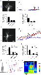 Figure 4. STIM1/TRPC1-dependent SOCE mediates the spontaneous and netrin-1-potentiated filopodial Ca2+ entries. (A) Left panel; a Lck-GCaMP3 fluorescent Ca2+ image of a Xenopus spinal growth cone showing three ROIs (F1, F2 and F3) encompassing the filopodia used to measure fluorescent intensities over time (right panels). Scale bar, 10 μm. The incidence (B) and the frequency (C) of the spontaneous filopodial Ca2+ transients were significantly attenuated by XSTIM1-DN (n = 30) or XTRPC1-MO (n = 30), when compared to the control (n=34; *P < 0.001 and **p < 0.005, Studentâs t-test). Values represent mean ± s.e.m. (D) A Lck-GCaMP3 fluorescent Ca2+ image of a growth cone showing three ROIs (left panel) and their representative traces of Ca2+ signals in three filopodia (F1, F2, F3) before and after bath application of netrin-1 (10 ng/ml) (right panel) in the presence of Sp-cAMP (25 μM). Scale bar, 10 μm. (E-F) Netrin-1 potentiated the incidence (E) and the frequency (F) of filopodial Ca2+ transients in spinal growth cones (control; n = 14) and this potentiation was abolished by XSTIM1-DN (n = 8) and XTRPC1-MO (n = 10). **P < 0.005 and ***p < 0.05 (Studentâs t-test). Values represent mean ± s.e.m. (G) Filopodia tips are the major site of initiation of filopodial Ca2+ entry as revealed by kymographs of Ca2+ signals in filopodia using Lck-GCaMP3 in modified Ringers saline (MR; n = 67), netrin-1 exposure (n = 27) and Ca2+ re-addition after depletion (SOCE; n = 43). The y axis represents the path distance along the filopodia divided into 10 portions and the x axis represents time. The arrows denote the tip and base of filopodia. |