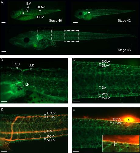 Fig. 3. Tg(Flk1:eGFP) transgenic tadpoles as a tool to study developmental lymphangiogenesis.