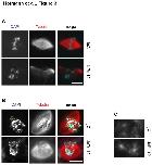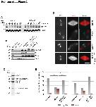 Figure 4. Depletion of the Prp19 complex specifically compromises spindle formation in Xenopus egg extracts.Xenopus egg extracts were depleted of the Prp19 complex or the U2 specific SF3a protein complex using specific antibodies (dePrp19, deSF3a120); an unspecific IgG served as a control. (A): The levels of Prp19 and the SF3a120 protein were analyzed by immunoblotting using tubulin as a loading control (see numbers). (B, C): Microtubule assembly was monitored in egg extracts after addition of sperm nuclei (DAPI, DNA, in C) and Cy3-tubulin (in B). 20 spindles were analyzed under all conditions, aligned and averaged (z-projection, average, ImageJ). (B): average microtubule intensity projections. Graphs show average intensity distributions along the pole-to-pole axes indicated in projections in blue. (C): chromatin distributions as determined from the DAPI signal.