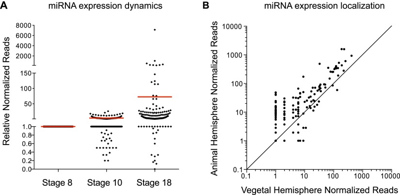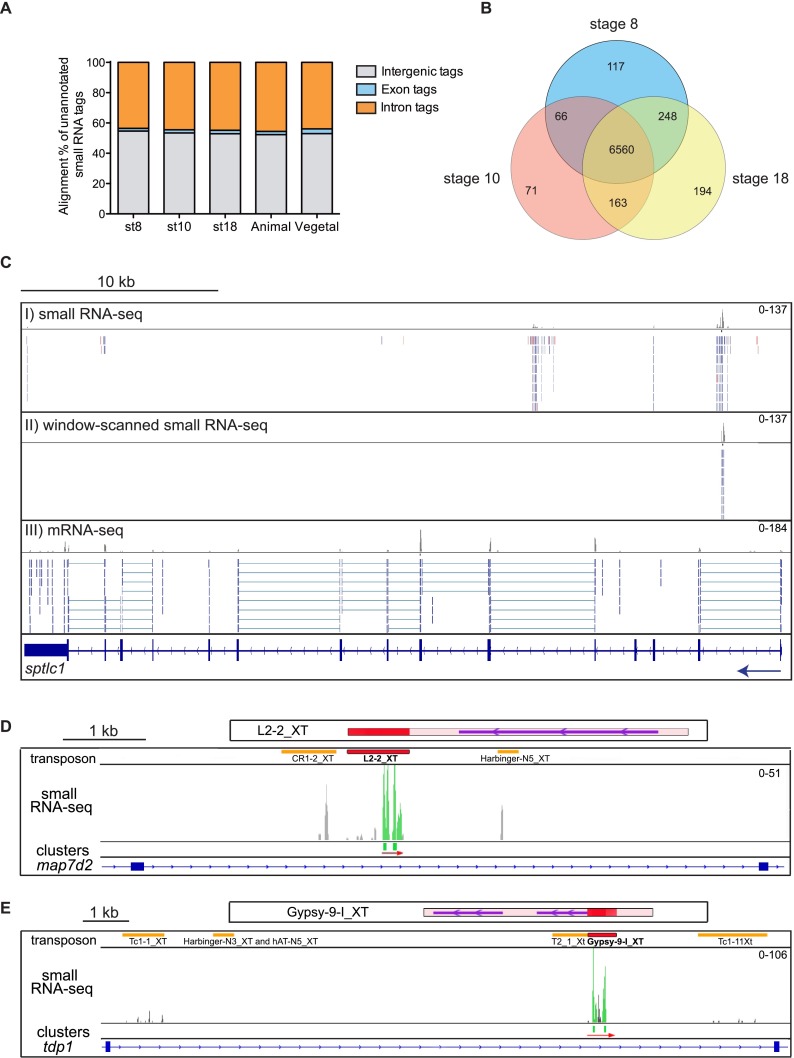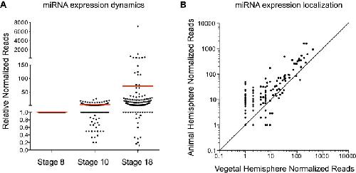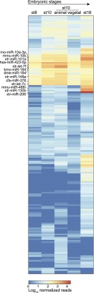 Small RNA profiling of Xenopus embryos reveals novel miRNAs and a new class of small RNAs derived from intronic transposable elements.