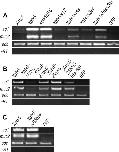 Fig. 5. Results of RT-PCR for ag1 and for muc2 detection in animal caps injected with different constructs as indicated in A, B and C. Animal caps were dissected from stage 9 embryos injected with 800 pg capped mRNAs of the different constructs as shown and grown up to stage 25. ag1 and muc2 expression was detected by RT-PCR on extracted mRNA. odc was used as internal reference. GFP is used as injection tracer; caps injected with GFP alone were used as a negative control.