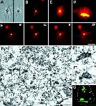 Figure 4. Cytoplasmic aggregates induced by CNN overexpression in mammalian cells. (A–D) In vitro microtubule nucleation onto CNN-containing sites detected by phase-contrast (A) and fluorescence (B–D) microscopy. GFP-tagged CNN aggregates were fractionated from CHO cells and incubated with X-rhodamine–conjugated brain tubulin. CNN aggregates in different sizes and shapes nucleated various numbers of microtubules. (E) Time-lapse images of GFP-tagged CNN-containing aggregates with assembled microtubules. CNN aggregates mixed with X-rhodamine tubulin were placed on a microscopic stage at time zero, and fluorescence images were taken at indicated times after the temperature was shifted to 37°C. (F) Thin-section EM of CHO cells expressing GFP-tagged CNN. The cells were briefly extracted with a detergent containing microtubule-stabilizing buffer before fixation. Two microtubule asters are seen in the field, and there is an electron-dense particle of different shape at each center. F′ and F′′ are close-ups of the areas outlined in F. (G) Immunofluorescence staining of 293 cells with anti-human centrin-2 antibodies (red). Dotted lines indicate the outline of a cell expressing CNN aggregates (green). There are two centrioles (arrows) that were not included in all sites induced by CNN overexpression. Bars, 10 μm (A–E, and G) and 1 μm (F–F′′).