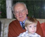 Figure 2. Picture of the proband at age 30 months with V.A. McKusick, M.D. Evident in the proband are the blue sclera, the well-placed and normal ear, tubular nose with metopic ridge, mild hyperterlorism, retrognathia, and hypomalar eminences.