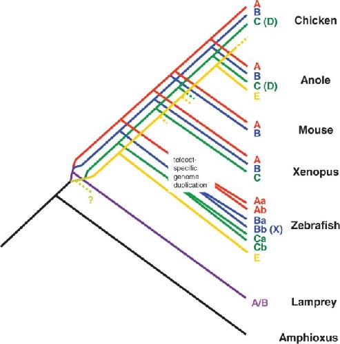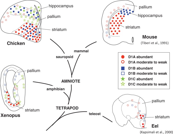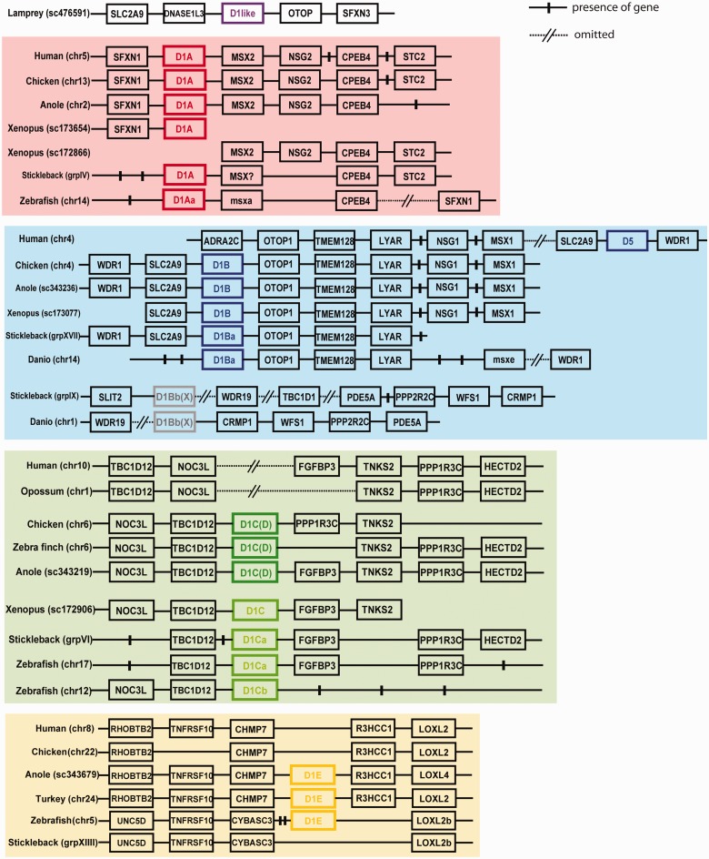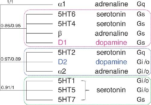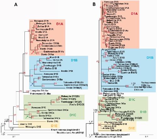Evolution of dopamine receptor genes of the D1 class in vertebrates.