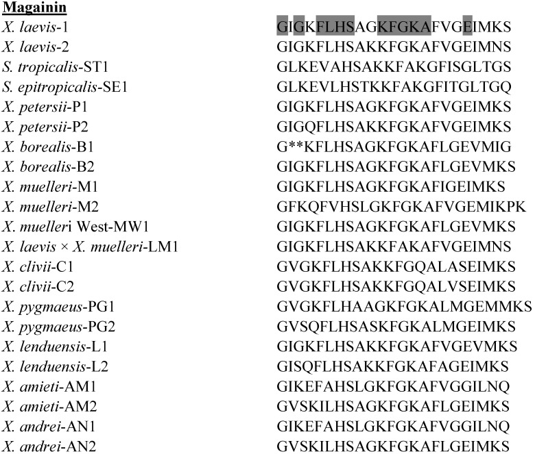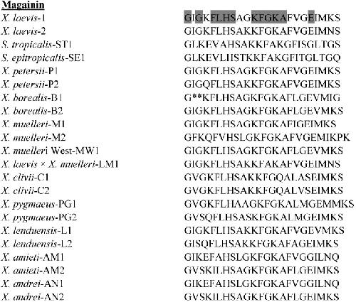 Cuervo, The Magainins: sequence factors relevant to increased antimicrobial activity and decreased hemolytic activity. 1988, Pubmed , Xenbase