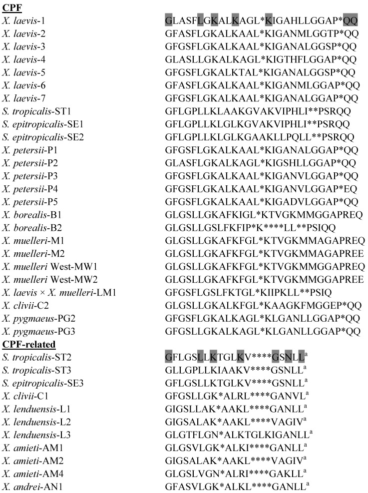 Srinivasan, Caerulein precursor fragment (CPF) peptides from the skin secretions of Xenopus laevis and Silurana epitropicalis are potent insulin-releasing agents. 2013, Pubmed , Xenbase