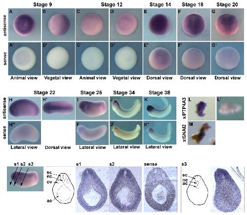 Figure 1. Spatial expression profile of xlPTP4A3 during embryogenesis.