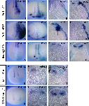 Fig. S3. Mapping of Prdm13 expression domain the developing neural tube. (A-C) Double in situ hybridization of Prdm13 with Eng2, Krox-20 or Mafb at the indicated stages. Krox-20 is in magenta; Mafb, in light blue. Both probes in panel A are revealed in dark blue. Note that Prdm13 is caudal to Eng2 and Krox-20, and that its expression terminates at the domain of Mafb expression. (D-H) Double labeling of Prdm13 with N-tubulin, Dbx1 or Prdm8 at the indicated stages. In panel D and F, Prdm13 is in light blue and the other probe is in dark blue. In panel E, G and H , both Prdm13 and Prdm8 are in dark blue. Note that in the neural plate Prdm13 is detected in the region of the differentiating primary interneurons, more laterally than Prdm8 and at the lateral border of the Dbx1 domain. At neural plate stage, Prdm13 is dorsal to Dbx1. |