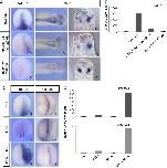 Fig. 3. Prdm13 is dramatically affected by Ptf1a but not by Neurog2 gain or loss of function in Xenopus. (AâL) In situ hybridization analysis of Prdm13 expression in Ptf1a-GR, Ptf1a-VP16 or Neurog2-GR injected embryos analyzed at neurula and tadpole stages. Pax2 was used as a control. At neurula stage, embryos are shown in dorsal views, anterior to the bottom. At tadpole stage, transversal sections at the level of the posterior hindbrain or spinal cord are shown. The arrow in G indicates ectopic Prdm13 in the somites. (MâR) In situ hybridization analysis of Prdm13 expression in embryos injected with 20 ng of a Ptf1a-MO or a Neurog2-MO. Pax2 was used as a control for the Ptf1a-MO. Prdm13 expression was analyzed at the open neural plate stage and in the neural tube of tadpole stage embryos. Pax2 was only analyzed at tadpole stage. Note that Prdm13 like Pax2 is reduced in Ptf1a-MO injected embryos and is largely unaffected in Neurog2-MO injected embryos. In all cases, LacZ mRNA was used as a lineage tracer. IS, injected side. |