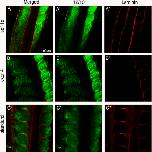Figure 9. Dystroglycan expression in sdf-1α and cxcr4 half morphants. Stage-26 (A) sdf-1α, (B) cxcr4, and standard (C) half-morphant embryos showing a merged imaged (MO-lissamine, 12/101 and dystroglycan). A'âB': Distribution of the lissamine-tagged MO. A''âB'': Immunolocalization of the muscle-specific marker, 12/101. A'''âB''': Images were converted to black and white to better visualize the distribution of dystroglycan on the morphant side in comparison to the control side. Scale bar in A applies to all frames. Anterior is at the top.