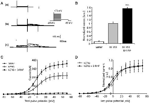 Figure 1. Coexpression of B-RAF increased hERG current in Xenopus oocytes.