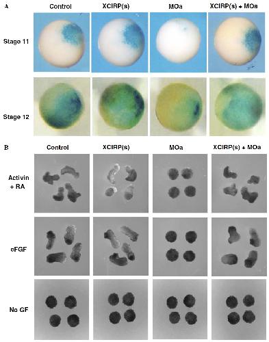 XCIRP, 5 nM MOa XCIRP, 5 nMMOb XCIRP, and (s + MOa) XCIRP transcripts or equal amount of b-gal mRNA (control, c). (A) The embryos were