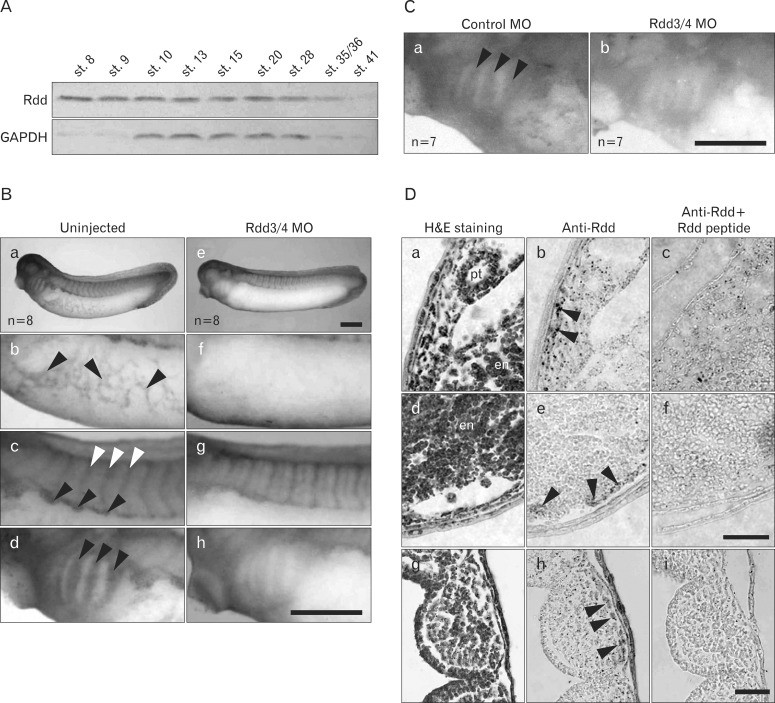 Expression and localization of Rdd proteins in Xenopus embryo.