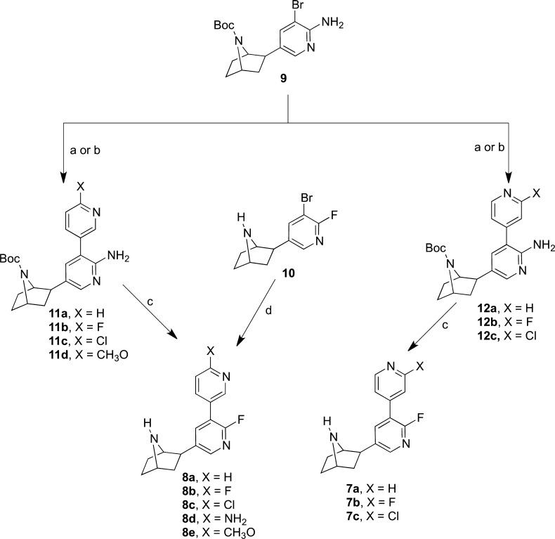 Synthesis and nicotinic acetylcholine receptor in vitro and in vivo pharmacological properties of 2'-fluoro-3'-(substituted phenyl)deschloroepibatidine analogues of 2'-fluoro-3'-(4-nitrophenyl)deschloroepibatidine.