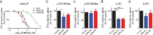 LAT2/4F2hc (C), LAT3 (D), or LAT4 (E). Data show mean ± SEM (n = 3), *P < 0.05, **P < 0.01, ***P < 0.001.